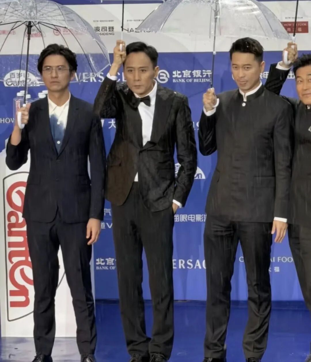 紅毯上,48歲的劉燁和電影主創(chuàng)一起撐傘進場。