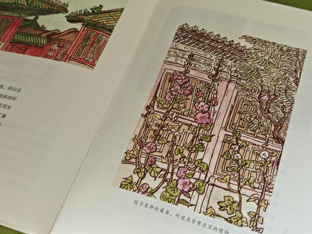 由故宮博物院普通員工陳樂創(chuàng)作的《我在故宮畫小畫兒》是其中最輕松的一本,書中收錄了200余幅手繪作品,既有角樓、御花園等開放景點,也有南十三排、乾隆花園等未開放區(qū)域的溫柔模樣,筆觸輕松可愛,故宮的一草一木、一貓一瓦都被畫得鮮活有趣。