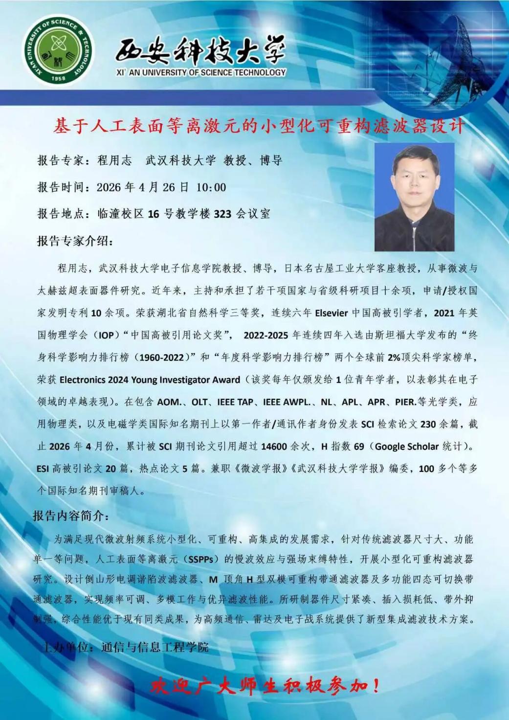 參與方式:國防科技大學(xué)一號院學(xué)術(shù)成果館二樓學(xué)術(shù)廳