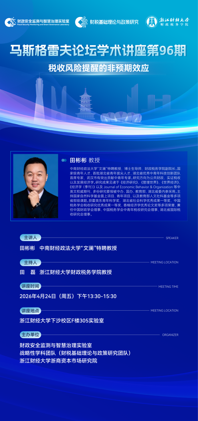 主辦:財(cái)政安全監(jiān)測與智慧治理實(shí)驗(yàn)室、戰(zhàn)略性學(xué)科團(tuán)隊(duì)(財(cái)稅基礎(chǔ)理論與政策研究團(tuán)隊(duì))、浙江財(cái)經(jīng)大學(xué)浙商資本市場研究院