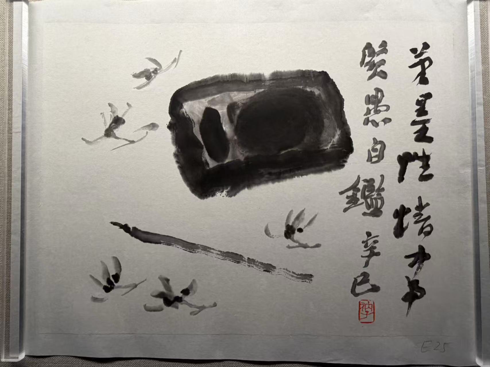 數(shù)十年的深耕不輟與低調(diào)隱居,讓衲子形成了獨(dú)特的藝術(shù)風(fēng)格——極簡(jiǎn)、禪意、淡泊。他的花鳥(niǎo)畫(huà)“惜墨如金”,物象極簡(jiǎn)卻充滿(mǎn)張力,筆下的花竹并非實(shí)物的簡(jiǎn)單描摹,而是性靈之寄寓、心象之流露。“我認(rèn)為寫(xiě)意的涵意是畫(huà)法和畫(huà)面比較簡(jiǎn)約,另一層是去偽存真?!瘪淖釉趧?chuàng)作隨感中寫(xiě)道,“我在畫(huà)畫(huà)時(shí),內(nèi)容需要簡(jiǎn),我便簡(jiǎn),需要詳盡,我便詳盡。根據(jù)畫(huà)面最后的結(jié)果需求,要什么就抓取什么。”