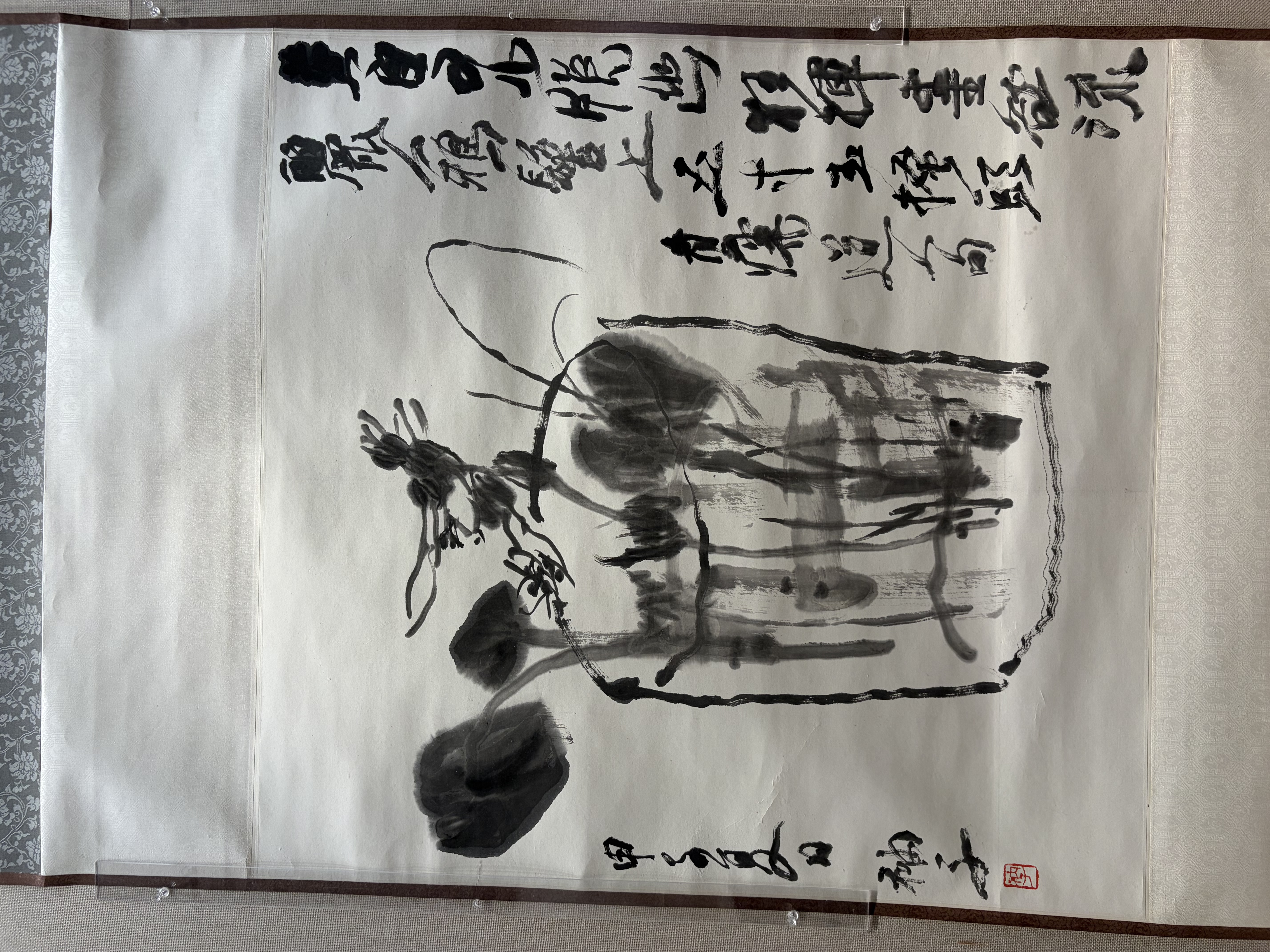 此次展覽策劃了三大章節(jié),呈現(xiàn)衲子的藝術(shù)脈絡(luò)與創(chuàng)作精髓?!俺邪舜箜崱闭鹿?jié),聚焦八大山人筆下的瓶花、魚(yú)、荷花三大題材,展現(xiàn)衲子與八大跨越時(shí)空的精神共鳴?!把壬f(shuō),繼承遺產(chǎn)不是保存故紙堆,而是要有所刪除、有所增益,推陳出新。”衲子此前在接受采訪時(shí)表示,“我喜歡八大山人獨(dú)立的人格、簡(jiǎn)練的筆墨、深邃的意境?!?/p>