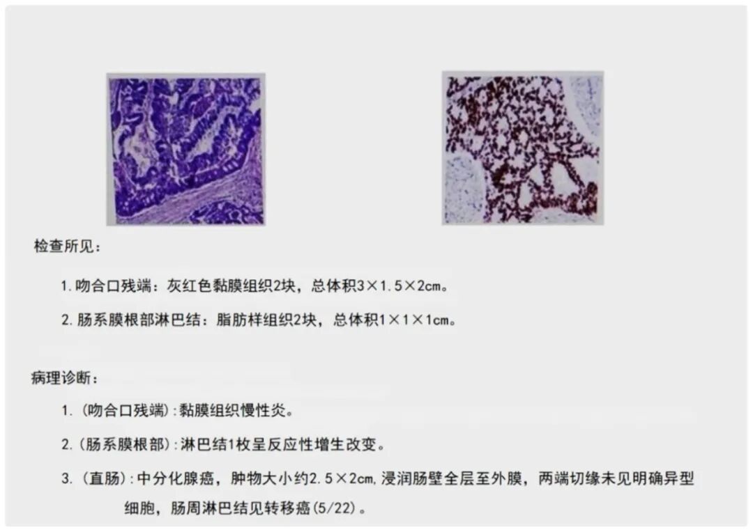 進(jìn)一步做腸鏡、病理活檢,結(jié)果確診:直腸中分化腺癌,伴淋巴結(jié)轉(zhuǎn)移,已經(jīng)是中晚期了。